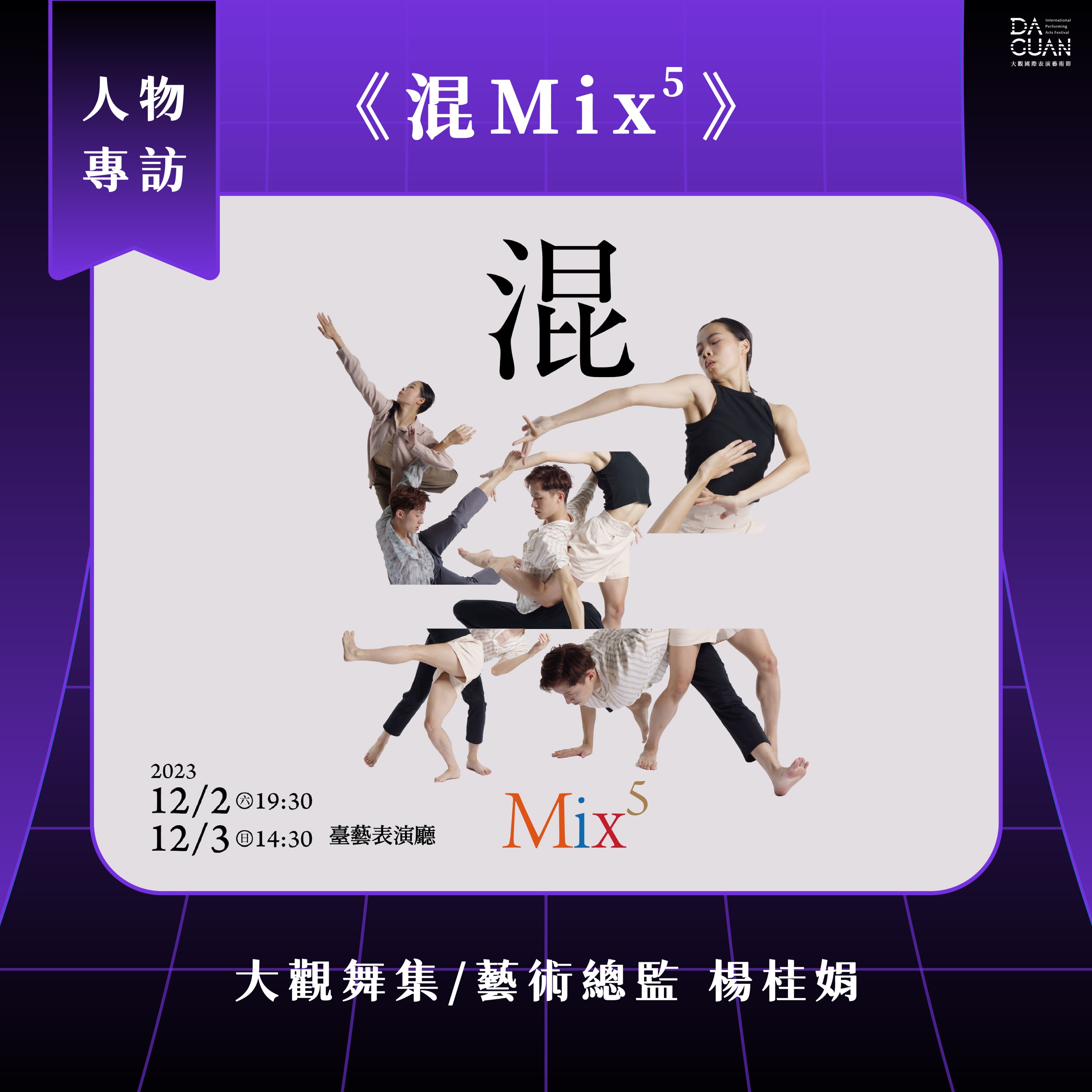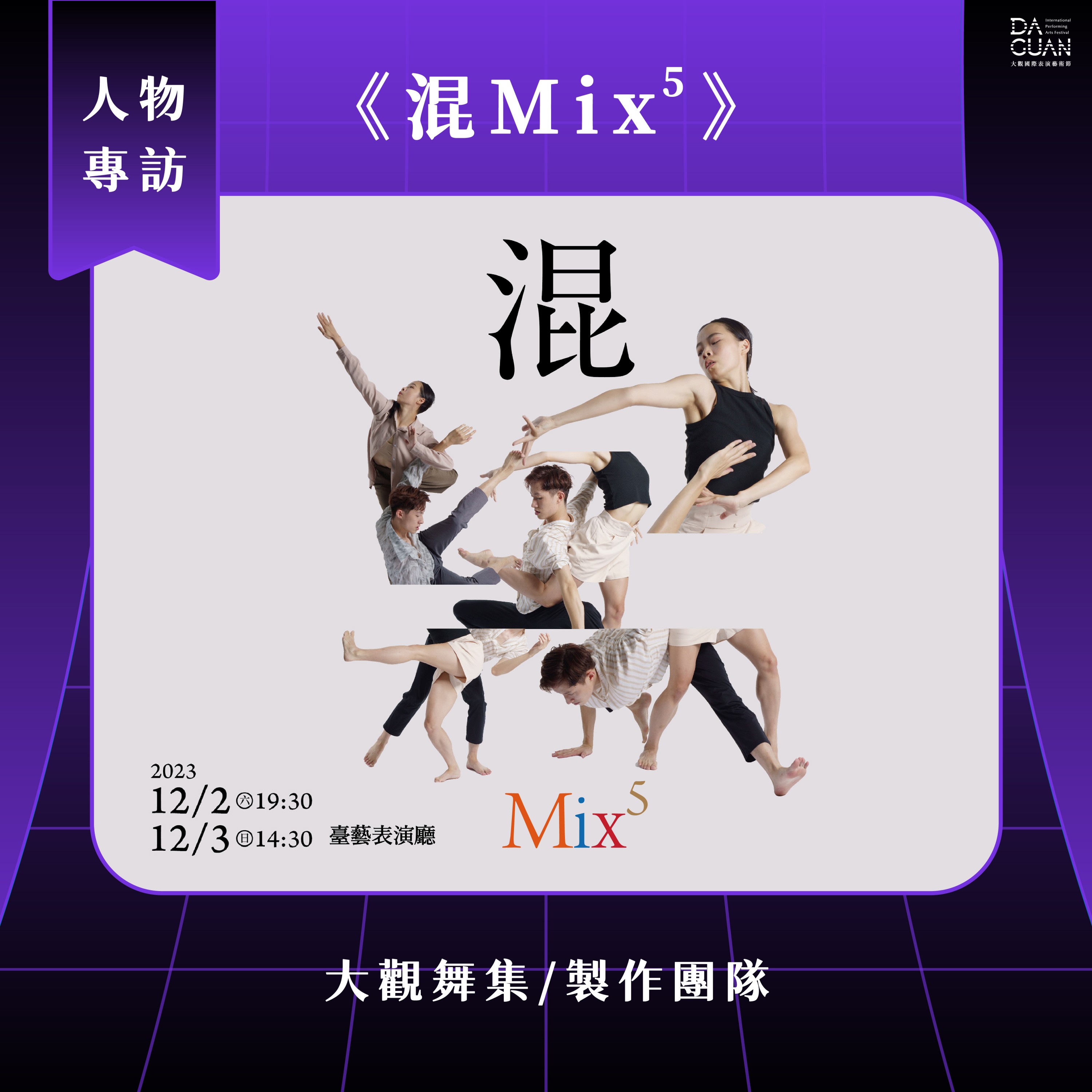 more今年的大觀國際表演藝術節即將迎來由大觀舞集呈獻的年度力作《混 Mix⁵》,在年末之際,為觀眾帶來一場感官豐富的舞蹈盛宴。我們有幸邀請到三位幕後推手,策展人蘇威嘉老師、藝術總監楊桂娟老師、行政總監林文中老師,一起和我們分享《混 Mix⁵》的獨特之處,以及舞台背後製作的秘辛。