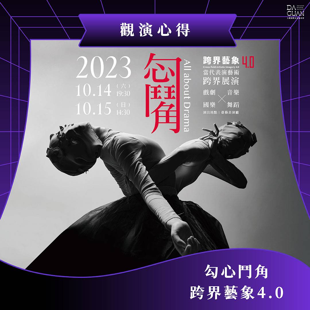 近年來隨著科技進步,表演藝術跨界合作已成為趨勢。國立臺灣藝術大學表演藝術學院集結戲劇、音樂、國樂和舞蹈齊心同力而成的跨域展演—【跨界藝象】,也帶著新世代的藝術質量,邁向了第四年。而本年度的演出命名為「勾心鬥角一跨界藝象4.0」,實在是巧妙又傳神!