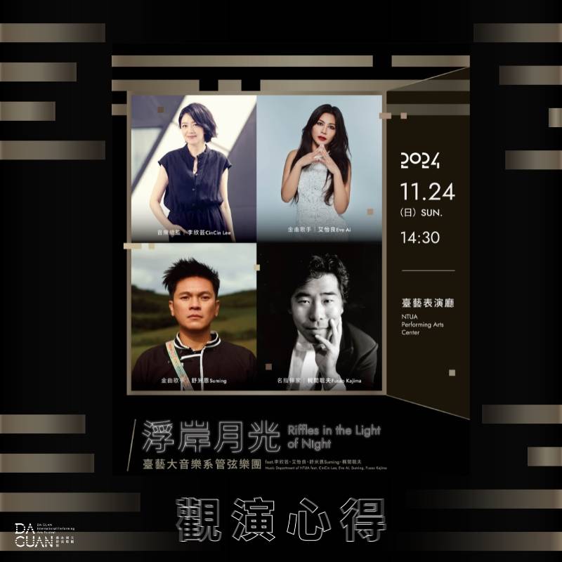 more2024大觀國際藝術節《浮岸月光》由臺灣藝術大學(下稱臺藝大)音樂學系主演,邀請李欣芸老師擔任音樂總監共同參與製作。《浮岸月光》的節目名稱源自李欣芸老師的作品《湖岸月光》,「浮」指的是臺藝大所在的浮洲,表現出專屬臺藝大人的驕傲。在這場音樂會中,李欣芸老師加入了不同曲風,涵蓋傳統的古典樂、流行音樂以及原住民古調等,為觀眾呈現出精心調配的音樂特調。